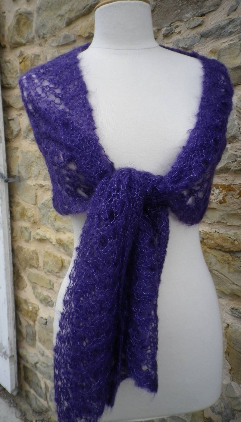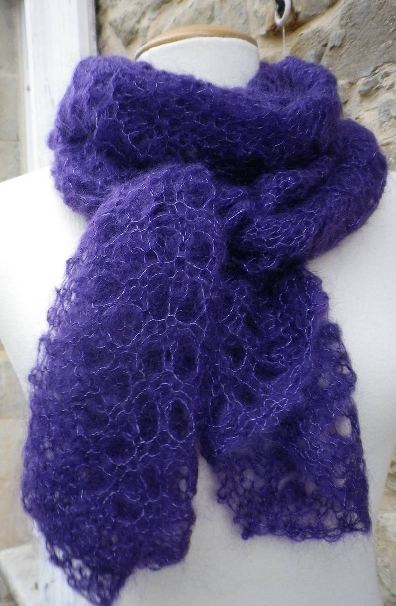 Cette écharpe est tricotée à la main avec notre fil à tricoter pur Mohair( 80 %) et Soie naturelle (20 %).